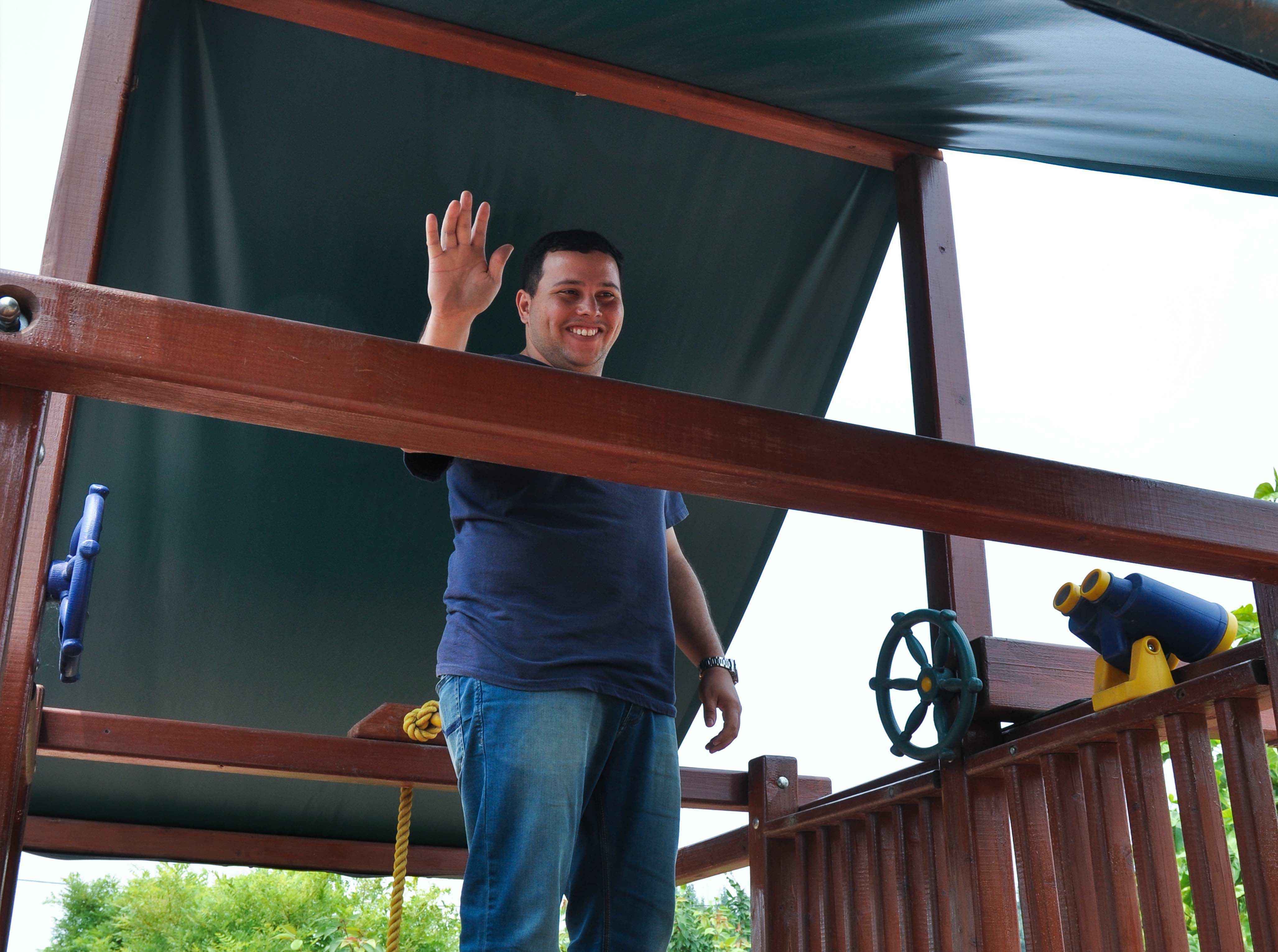 SE公司采购经理Michael第一次来到Pafic洽谈swing set的合作事宜,对产品优秀的质量印象审核,并与Frank和Jo快乐地进行试玩。